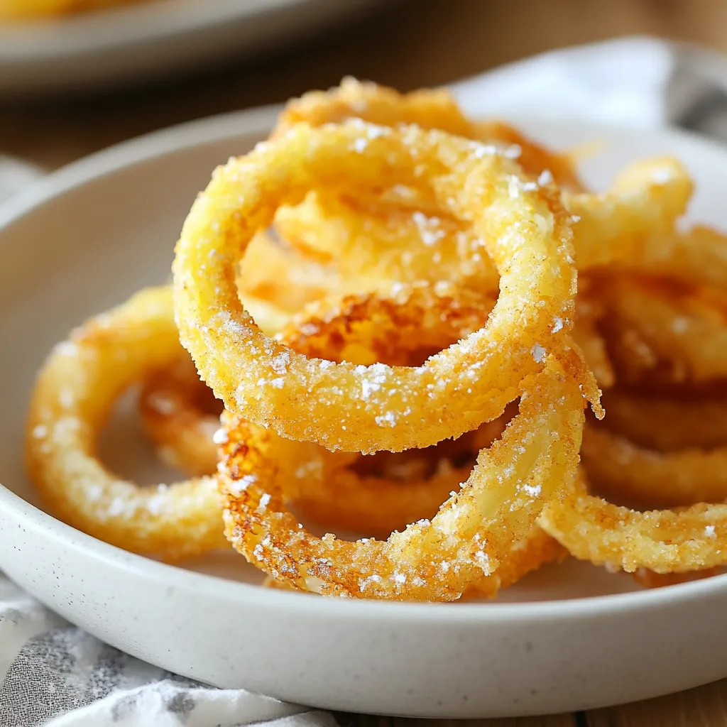To make air fryer crispy onions, you need the following ingredients: - 2 large onions, thinly sliced - 1 cup all-purpose flour - 1 teaspoon garlic powder - 1 teaspoon onion powder - 1/2 teaspoon cayenne pepper (optional) - Salt and pepper to taste - 1 cup buttermilk (or plant-based milk for a vegan option) - Cooking spray or olive oil for misting These ingredients are simple and easy to find. The onions give a great base flavor. The flour and spices help create a nice crispy coating. The buttermilk adds moisture, which helps the flour stick. If you want a bit of heat, the cayenne pepper is a great touch. You can skip it if you prefer a milder flavor. Gather these items before you start cooking. Having everything ready makes the process smooth and fun. You can make these crispy onions for snacks, toppings, or sides. {{ingredient_image_1}} First, thinly slice the onions. I recommend using a sharp knife for clean cuts. Aim for even rings to ensure they cook well. After slicing, soak the onions in buttermilk for about 10-15 minutes. This step helps the coating stick to the onions. If you prefer, you can use plant-based milk for a vegan option. Next, combine the flour with seasonings in a large bowl. Use 1 cup of all-purpose flour, 1 teaspoon of garlic powder, 1 teaspoon of onion powder, and optional cayenne pepper. Add salt and pepper to taste. Mix everything well to blend the spices evenly. After mixing, take the soaked onions and dredge them in the flour mixture. Make sure each slice is well-coated. Shake off any extra flour before placing them on a plate. Now, it's time to air fry. Preheat your air fryer to 375°F (190°C). Once it's ready, lightly mist the basket with cooking spray or olive oil. Arrange the coated onion slices in a single layer. Avoid overcrowding the basket, as this helps them cook better. You may need to do this in batches. Air fry the onions for 10-12 minutes, shaking the basket halfway through. This ensures an even cook. They should turn golden brown and be crispy. After cooking, carefully remove the onions and let them cool on a paper towel to absorb excess oil. Repeat with any remaining onion slices. Enjoy your crunchy treat! To get crispy onions, start with good flour coating techniques. After soaking, gently shake off excess buttermilk. Then, coat each slice well in the flour mix. Make sure every piece gets flour. This helps them crisp up nicely in the air fryer. Soaking the onions is very important. It makes the flour stick better. Soak them for 10-15 minutes in buttermilk. This step adds flavor and moisture. It also helps the coating stay on during cooking. Avoid overcrowding the air fryer basket. If you pack it too tightly, the onions won’t cook evenly. Cook in batches if needed. Each slice needs space to get hot air around it. Check for doneness halfway through cooking. Give the basket a shake to toss the onions. This ensures they brown evenly. You want them golden brown and crispy. Adjusting seasoning can take your crispy onions to the next level. Add spices like smoked paprika or more garlic powder for extra flavor. You can also try adding a bit of cheese to the flour mix for a unique taste. Consider using fresh herbs in the coating. Chopped parsley or chives can add a fresh kick. Play around and find what you love best. The goal is to make these onions your own! Pro Tips Slice Evenly: Ensure that the onion slices are cut to a uniform thickness for even cooking and crispiness. Soaking Time: Allowing the onions to soak in buttermilk for 10-15 minutes helps the flour adhere better, resulting in a crunchier texture. Don’t Overcrowd: When air frying, make sure to arrange the onions in a single layer to allow for proper circulation of hot air, ensuring they become crispy. Shake for Even Cooking: Shake the air fryer basket halfway through cooking to promote even browning and prevent any slices from steaming. {{image_2}} You can easily make this recipe vegan. Just swap the buttermilk for plant-based milk. Almond, soy, or oat milk work great. This small change keeps your crispy onions tasty and plant-friendly. Want to mix things up? You can add different spices to the flour mix. Smoked paprika gives a nice, smoky flavor. For a cheesy touch, try adding grated vegan cheese or spices like dill or thyme. These will bring a new twist to your crispy onions. Crispy onions are super versatile. You can use them as a topping for burgers or salads. They also add crunch to soups or casseroles. If you want a quick snack, just enjoy them on their own! They pair well with dips like ranch or spicy mayo. To keep your crispy onions fresh, store them in the refrigerator. Place them in an airtight container. This keeps out moisture and helps them stay crunchy. Glass or plastic containers work well for this. You can also use a zip-top bag, but make sure to squeeze out the air. If you want to enjoy crispy onions later, freezing is a great option. First, let them cool completely. Then, spread them on a baking sheet in a single layer. Freeze for about an hour. Once frozen, transfer them to a freezer-safe bag or container. This helps prevent clumping. When you're ready to eat, reheat them in the air fryer at 350°F (175°C) for about 5-7 minutes. This will bring back their crunch. Crispy onions can last in the fridge for about 3 to 5 days. Keep an eye out for any signs of spoilage. If they become soft or have an off smell, it’s best to discard them. Proper storage helps keep them tasty and safe to eat. To make air fryer crispy onions, follow these key steps: 1. Slice Onions: Thinly cut two large onions into rings. 2. Prepare Coating: In a bowl, mix one cup of flour, one teaspoon of garlic powder, one teaspoon of onion powder, cayenne (if desired), salt, and pepper. 3. Soak Onions: Submerge sliced onions in one cup of buttermilk for 10-15 minutes. 4. Coat Onions: Remove onions from buttermilk, let excess drip, and dredge in the flour mix. 5. Preheat Air Fryer: Set your air fryer to 37