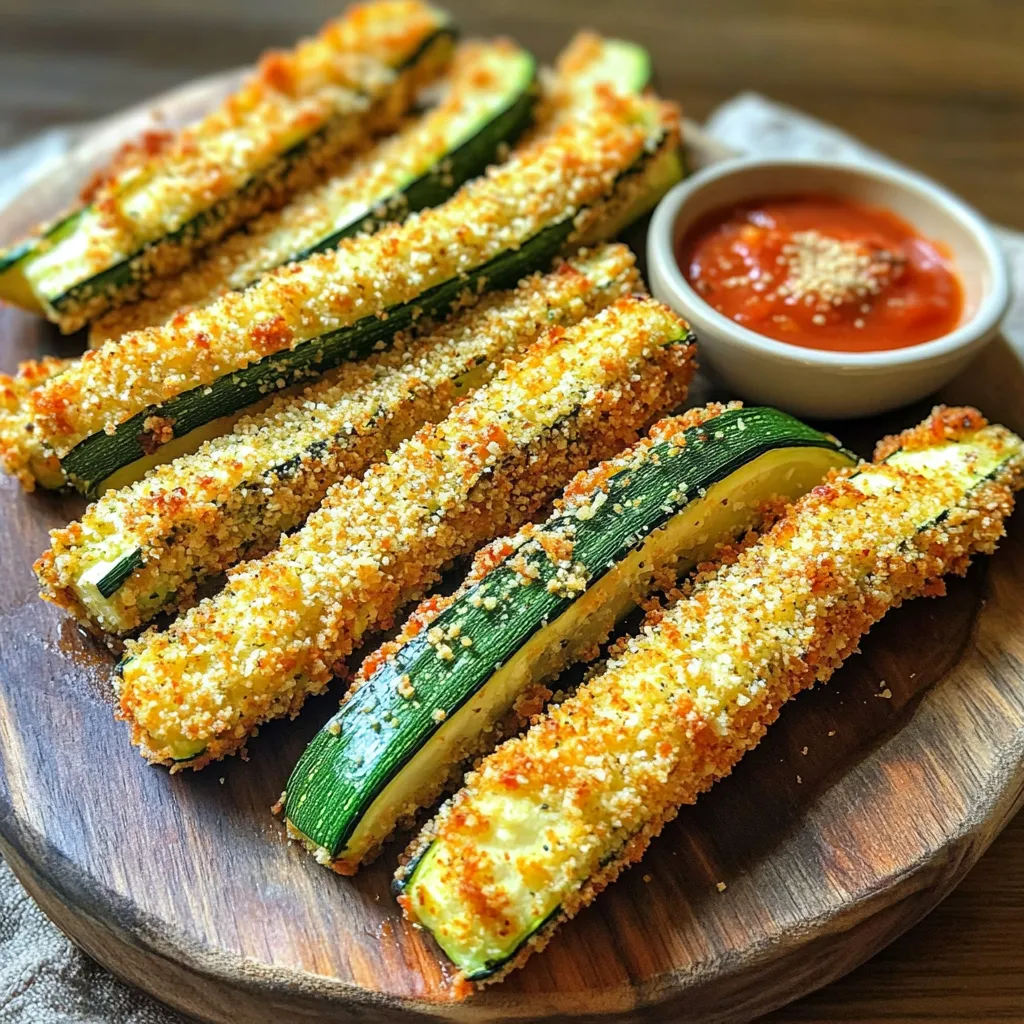 You can play with the flavors. Try adding paprika or cayenne pepper to the breadcrumb mix. This will give your fries a fun kick. Before you coat the zucchini, let the excess egg drip off. This helps the breadcrumbs stick better.