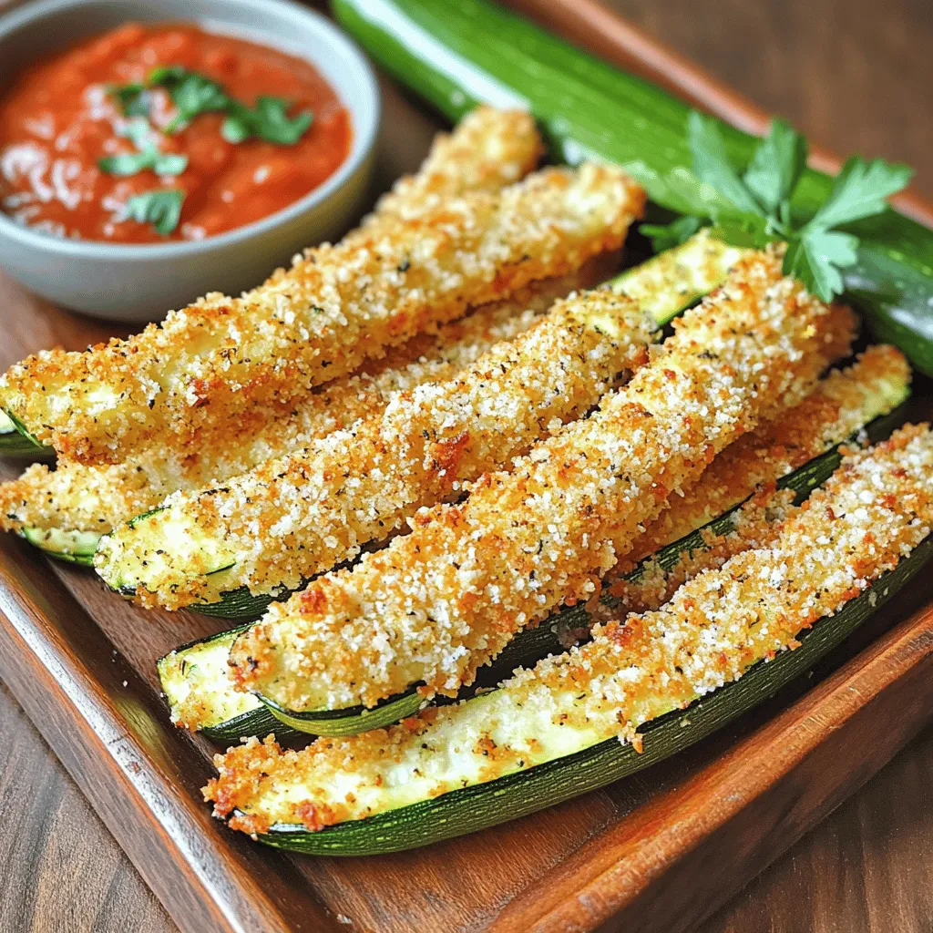 These ingredients create a tasty and crispy treat. Fresh zucchinis give a nice crunch. Panko breadcrumbs add extra texture, while Parmesan cheese gives a rich flavor. Garlic powder and Italian seasoning boost the taste. The eggs help the coating stick well. Salt and pepper are essential for seasoning. Cooking spray keeps everything from sticking and aids in crisping. Each ingredient plays a role in making this dish a delicious delight!