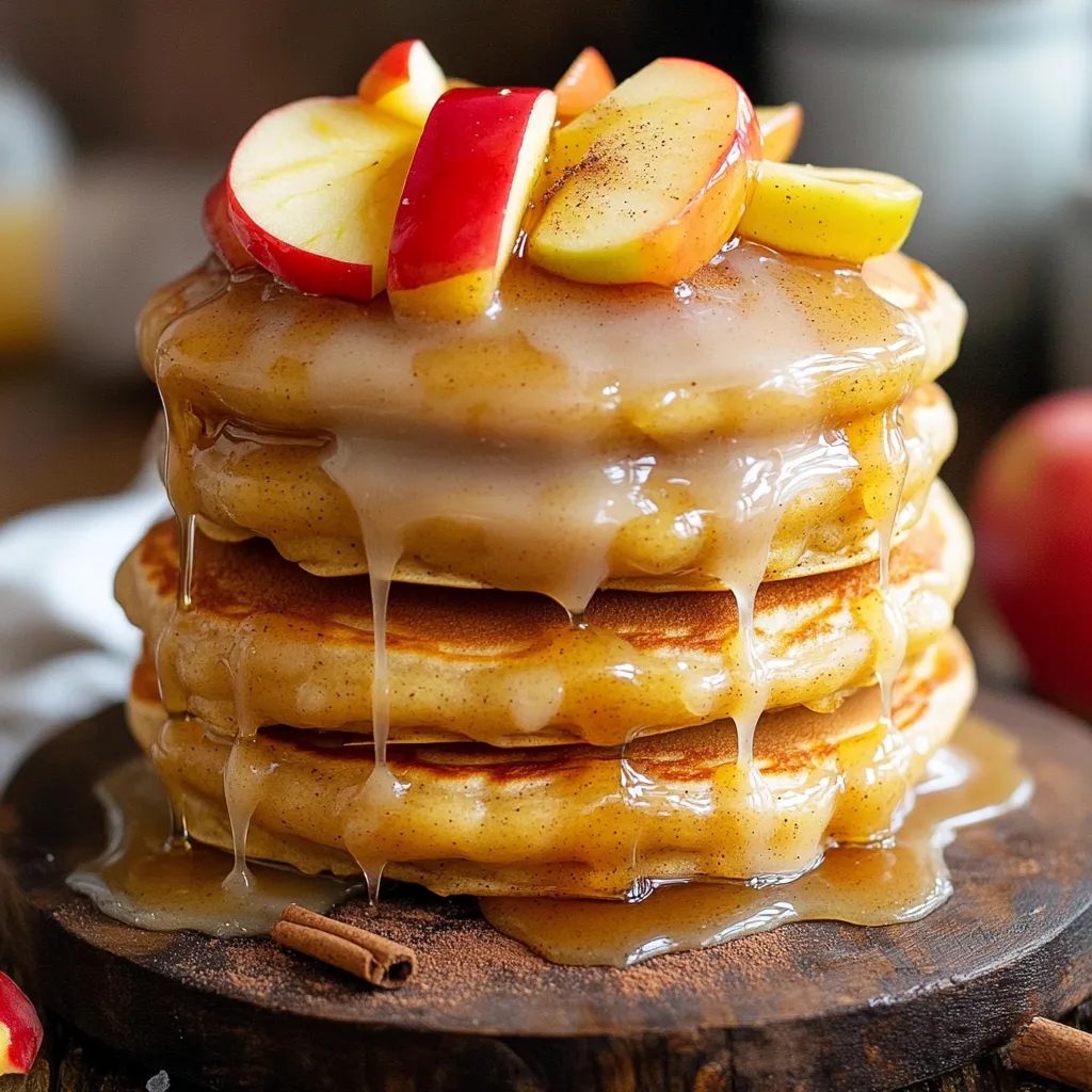 Stack your pancakes high on a plate for a nice look. Drizzle the maple glaze over the top. Let the glaze flow down the sides. For extra flair, sprinkle some cinnamon on top. You can also add a few apple slices for color and taste.