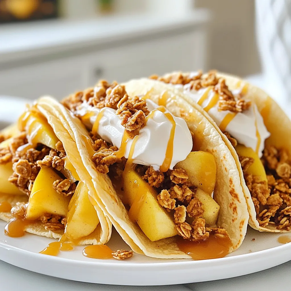 The tortillas should be large enough to hold the filling without breaking. Granola adds a fun crunch, while whipped cream and caramel sauce make it indulgent. Each ingredient plays a role in making these apple pie tacos a delightful treat.