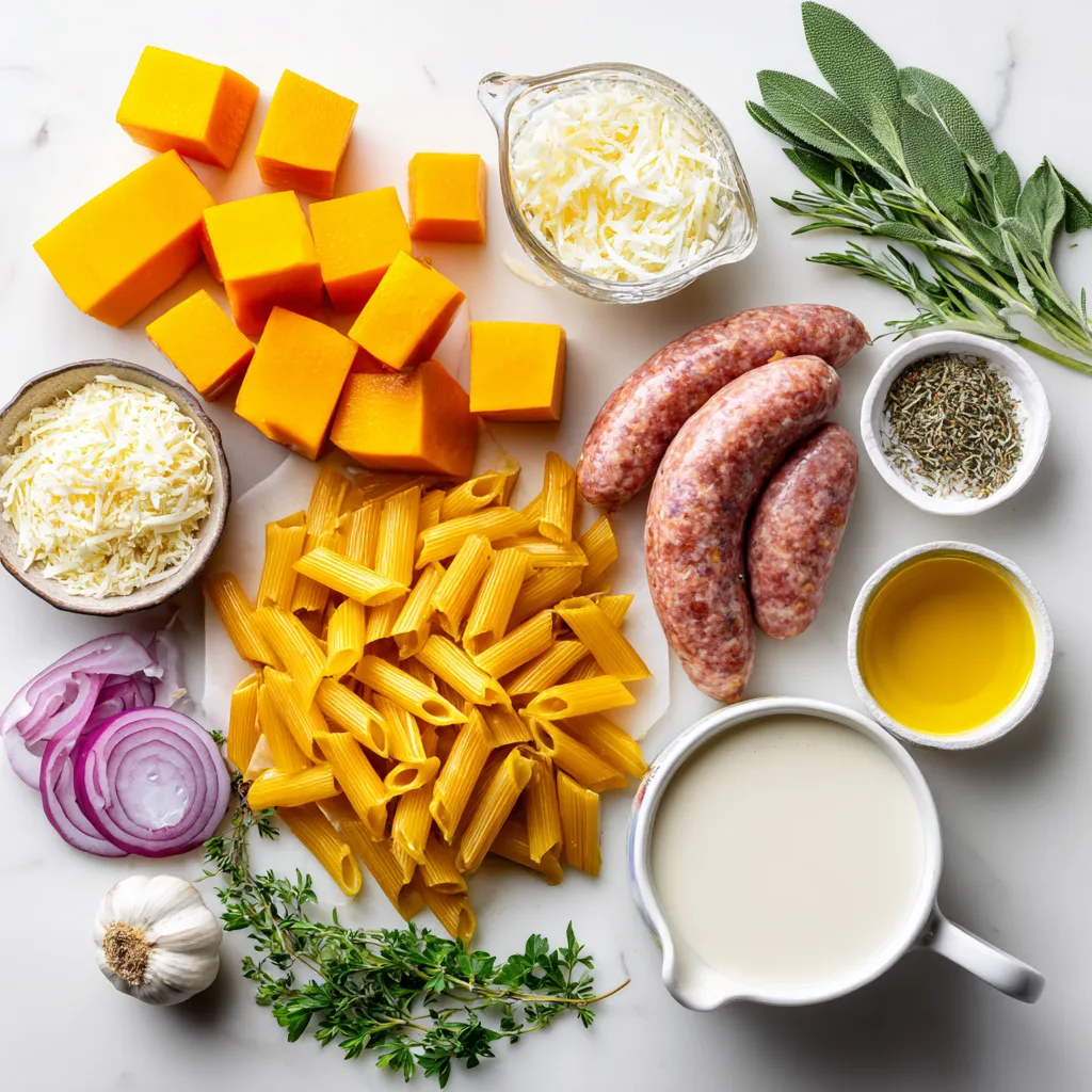 Each ingredient plays a key role in this dish. The pasta serves as the base, giving it heartiness. The Italian sausage brings rich flavor, while the butternut squash adds sweetness and texture. The onion and garlic provide a savory depth, and the herbs bring fresh notes that brighten the dish. The broth and cream create a luscious sauce, binding everything together. Salt, pepper, and Parmesan cheese round off the flavors, making each bite satisfying. Olive oil adds richness, and parsley gives a pop of color on top.