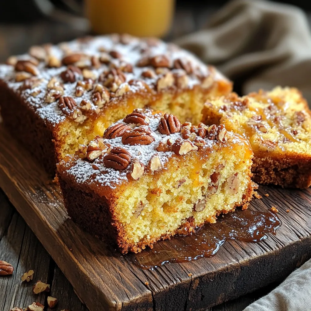 For an elegant touch, serve slices on a rustic wooden board. This gives a homey feel. Garnish with whole pecans and a light dusting of powdered sugar. This not only looks pretty but also adds a sweet finish. A drizzle of maple glaze on top adds a shiny, inviting look to your coffee cake.