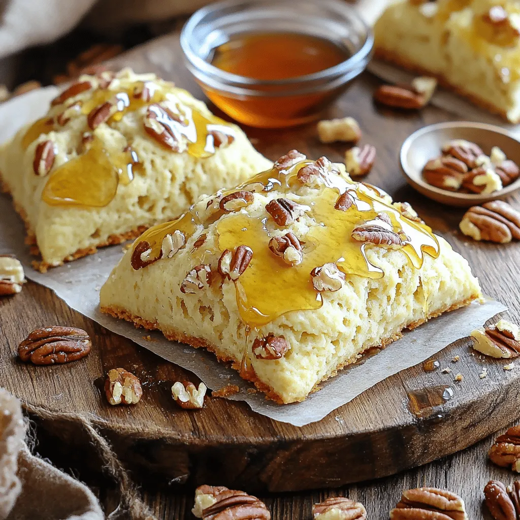 To make Bakery Style Maple Pecan Scones, gather these items: - 2 cups all-purpose flour - 1/3 cup granulated sugar - 1 tablespoon baking powder - 1/2 teaspoon salt - 1/2 cup unsalted butter, cold and cubed - 1/2 cup pecans, coarsely chopped - 1/2 cup heavy cream - 1/4 cup pure maple syrup - 1 large egg - 1 teaspoon vanilla extract Using high-quality ingredients is key for great flavor. Fresh, cold butter gives the scones a flaky texture. Pure maple syrup adds rich sweetness and depth. If you have special dietary needs, here are some alternatives: - Use gluten-free flour for a gluten-free option. - Replace butter with coconut oil for a dairy-free scone. - Almond milk can stand in for heavy cream if desired. Pay attention to your ingredient choices. Great ingredients make a big difference in taste and texture. Enjoy the process, and your scones will shine! First, preheat your oven to 400°F (200°C). This step is key to getting a nice rise on your scones. While the oven heats, line a baking sheet with parchment paper. This helps prevent sticking and makes cleanup easier. Place the baking sheet in the middle of the oven. This spot allows for even heat and baking. Next, gather a large mixing bowl. In it, combine 2 cups of all-purpose flour, 1/3 cup of granulated sugar, 1 tablespoon of baking powder, and 1/2 teaspoon of salt. Use a whisk to blend these dry ingredients well. Whisking breaks up any lumps and mixes everything evenly. Each of these ingredients plays a role: flour gives structure, sugar adds sweetness, baking powder helps the scones rise, and salt enhances flavor. Now it's time for the butter. Take 1/2 cup of cold, cubed unsalted butter. Add it to the dry mix. Use a pastry cutter or your fingers to cut the butter into the flour. Aim for a texture that looks like coarse crumbs. This step is important. It creates flaky layers in your scones. Next, prepare your pecans. Coarsely chop 1/2 cup of pecans. If you like, toast them in a dry skillet over medium heat for 3 to 5 minutes. This brings out their rich flavor. Once ready, stir the chopped pecans into the butter and flour mix. Getting the right texture is key for your scones. You want them light and fluffy. Do not overwork the dough. When you mix the wet and dry ingredients, stir gently. The dough should feel slightly sticky but hold together well. If it feels too dry, add a tiny bit of cream. This will help it come together without losing lightness. To make your scones more special, try adding mix-ins. Chocolate chips can bring a fun twist. Dried fruits like cranberries or apricots also work well. You can even use different syrups for flavor. Try using honey or agave syrup in place of maple syrup. This gives you a new taste without changing much. Serve your warm scones with cream or jam for a treat. A simple drizzle of maple syrup can make them even better. Pair your scones with coffee or tea. The rich flavors balance nicely with these drinks. Enjoying them fresh out of the oven makes for a perfect snack or breakfast. {{image_2}} You can make these scones gluten-free by using the right flour. Try almond flour, coconut flour, or a gluten-free all-purpose blend. When using gluten-free flour, add an extra egg or some xanthan gum for better texture. This will help bind the dough and keep it from crumbling. Bake at the same temperature but check for doneness a few minutes early, as gluten-free scones may bake faster. To make these scones vegan, swap out a few ingredients. Use a plant-based butter instead of regular butter. Replace heavy cream with almond milk or coconut cream. For the egg, you can use a flaxseed egg. To make this, mix one tablespoon of flaxseed meal with three tablespoons of water and let it sit for a few minutes. You may need to adjust the baking time slightly, as vegan scones can take a bit longer to set. You can change the flavor of your scones with the seasons. In autumn, add pumpkin spice for a warm, cozy flavor. Mix in a half-cup of pureed pumpkin for extra moisture. You can also play with different nuts. Try walnuts or hazelnuts for a different crunch. Dried fruits like cranberries or apples can add sweet and tart notes, giving your scones a fun twist for any time of year. To keep your maple pecan scones fresh, store them properly. You can leave them on the counter for up to two days. Just place them in an airtight container to prevent them from drying out. If you want to store them longer, put them in the fridge. This keeps them fresh for up to a week. For freezing, wrap each scone in plastic wrap. Then, put them in a freezer bag. They can stay in the freezer for up to three months. When you’re ready to eat them, take out the scones and let them thaw on the counter. You can also reheat them right from the freezer. To reheat your scones, use the oven for the best texture. Preheat the oven to 350°F (175°C). Place the scones on a baking sheet and heat for about 10 minutes. This method keeps them nice and flaky. If you want a quick option, you can microwave the scones. Heat them for about 15 to 20 seconds. However, this may make them a bit softer. For a fresh touch, drizzle some maple syrup on top before serving. Enjoy your warm scones! Yes, you can use different nuts in these scones. Almonds, walnuts, or hazelnuts work well. Each nut brings its own flavor and crunch. Just chop them coarsely and mix as you would with pecans. Be mindful that some nuts may toast faster than pecans. Adjust baking time if needed to avoid burning. Freshly baked scones last about 2 to 3 days at room temperature. Store them in an airtight container to keep them fresh. If you want to save them longer, place the scones in the fridge. They can last up to a week this way. However, scones taste best when fresh. Yes, you can make the dough ahead of time. After mixing, wrap it tightly in plastic wrap. You can store it in the fridge for up to 24 hours. When ready to bake, roll out the dough and cut it into wedges. If you freeze the dough, it c