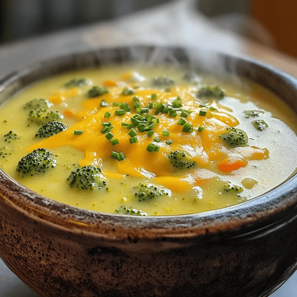 To achieve a creamy broccoli cheddar soup, I focus on two main steps. First, I blend the broccoli with the broth until smooth. This helps to create a rich base. Second, I add cheese slowly while stirring. This ensures the cheese melts evenly. Using sharp cheddar adds a great depth of flavor. If you want it extra creamy, you can mix in whole milk or almond milk.