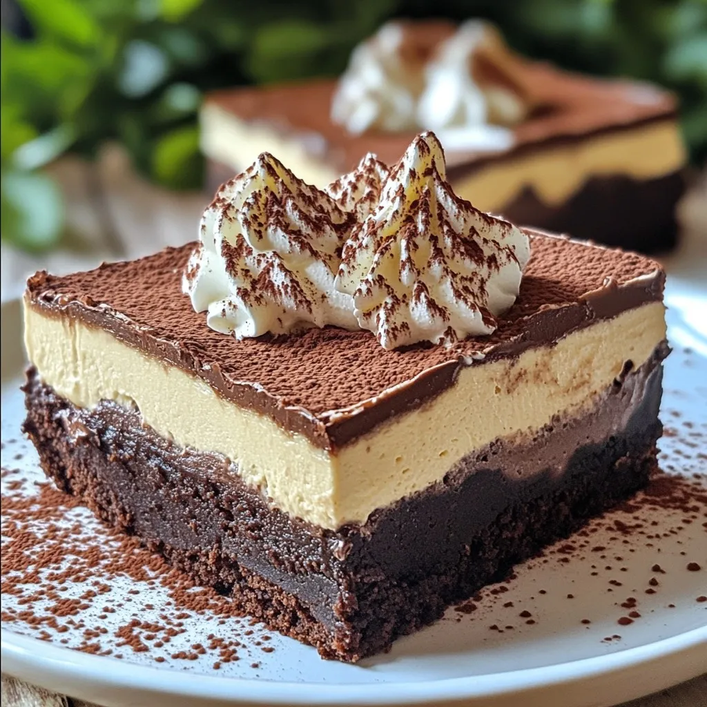 When I create Chocolate Mousse Brownies, I always start with fresh ingredients. The unsalted butter gives it a rich taste. Dark chocolate chips add deep flavor and sweetness. Granulated sugar helps balance the chocolate. Eggs bind everything together, making the brownies fluffy. Vanilla extract adds a lovely aroma. All-purpose flour gives structure to the brownies. A pinch of salt enhances all the flavors. Heavy cream is key for a light mousse. Powdered sugar sweetens the cream just right. Finally, cocoa powder is perfect for that beautiful dusting.