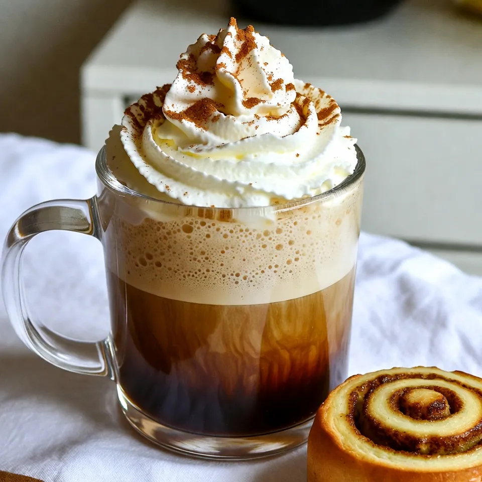 A Cinnamon Roll Latte is a warm drink that tastes like a sweet cinnamon roll. It blends rich espresso or strong coffee with creamy milk, cinnamon syrup, and vanilla extract. You top it off with whipped cream and a sprinkle of ground cinnamon. It’s the perfect treat for coffee lovers and cinnamon fans!