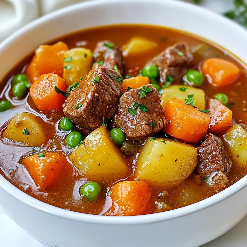 For a richer flavor, add tomato paste at the start. It blends well with the broth. Fresh herbs like thyme and rosemary boost the taste. You can also add a splash of red wine while cooking. This adds depth to the stew. If you like a bit of spice, try adding a pinch of red pepper flakes. Don’t forget to taste and adjust salt and pepper as you go. Green peas add a nice touch at the end, bringing color and sweetness.
