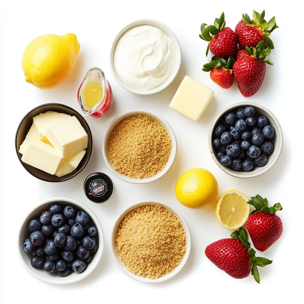 These ingredients create a rich and creamy cheesecake. The graham cracker crumbs give the nice crust you want. The cream cheese and sour cream make it smooth and tasty. Fresh berries add a pop of color and flavor on top. Make sure everything is ready before you start. This will help you move quickly through the recipe. Enjoy the process; it’s fun to see everything come together!