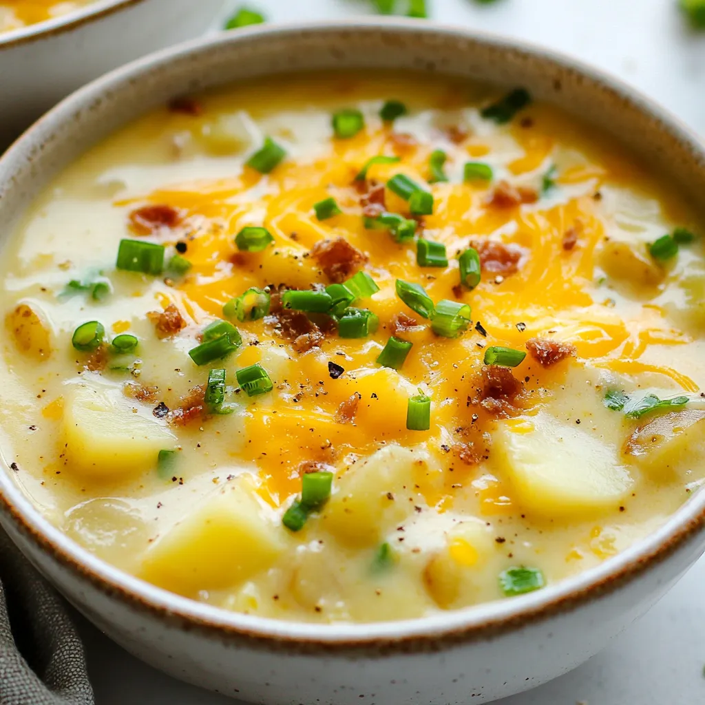 Seasoning is crucial for flavor. Salt and pepper are must-haves. Smoked paprika adds a hint of smokiness. Cheddar cheese melts into the soup, making it extra cheesy. Green onions on top not only add color but also a fresh crunch.