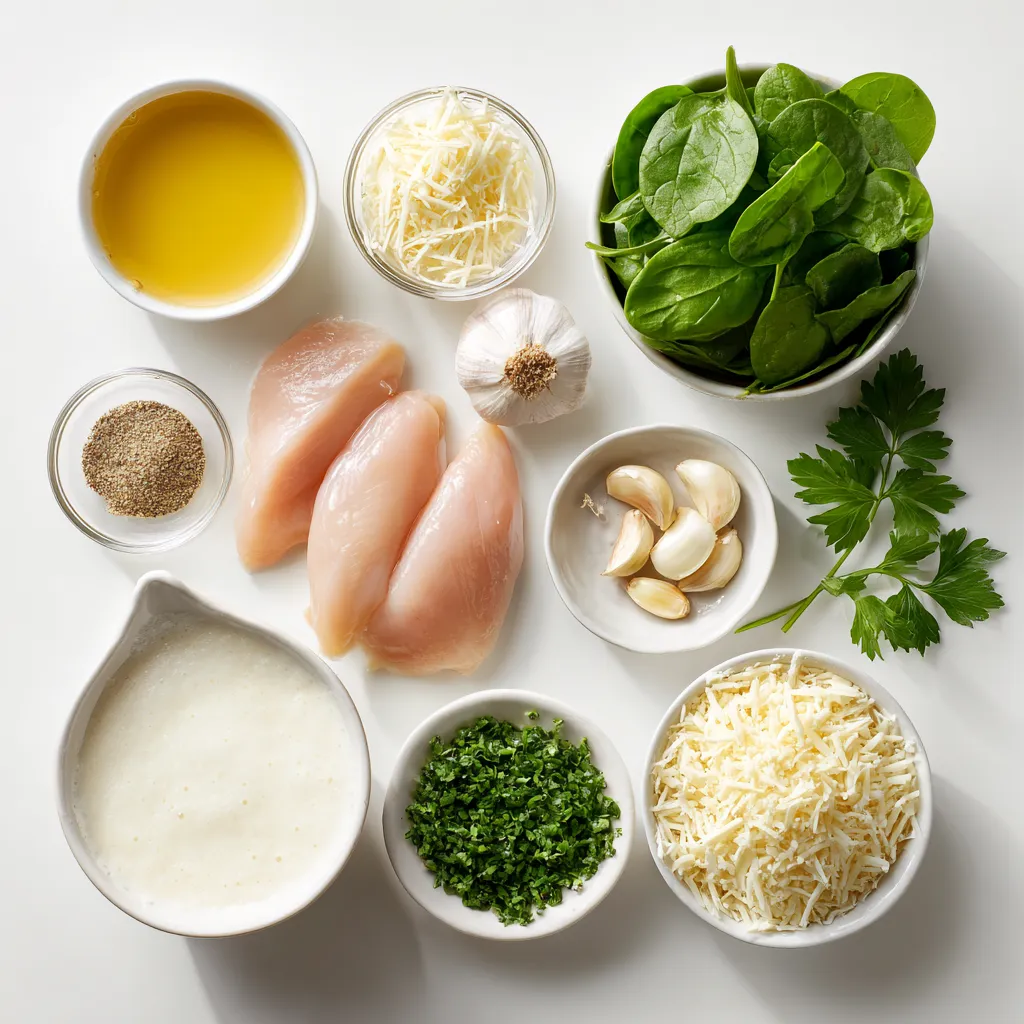 Finally, we have some fresh touches. Two cups of baby spinach add color and nutrients. For a nice finish, chop some fresh parsley to sprinkle on top. Together, these ingredients create a dish that is creamy, flavorful, and inviting.