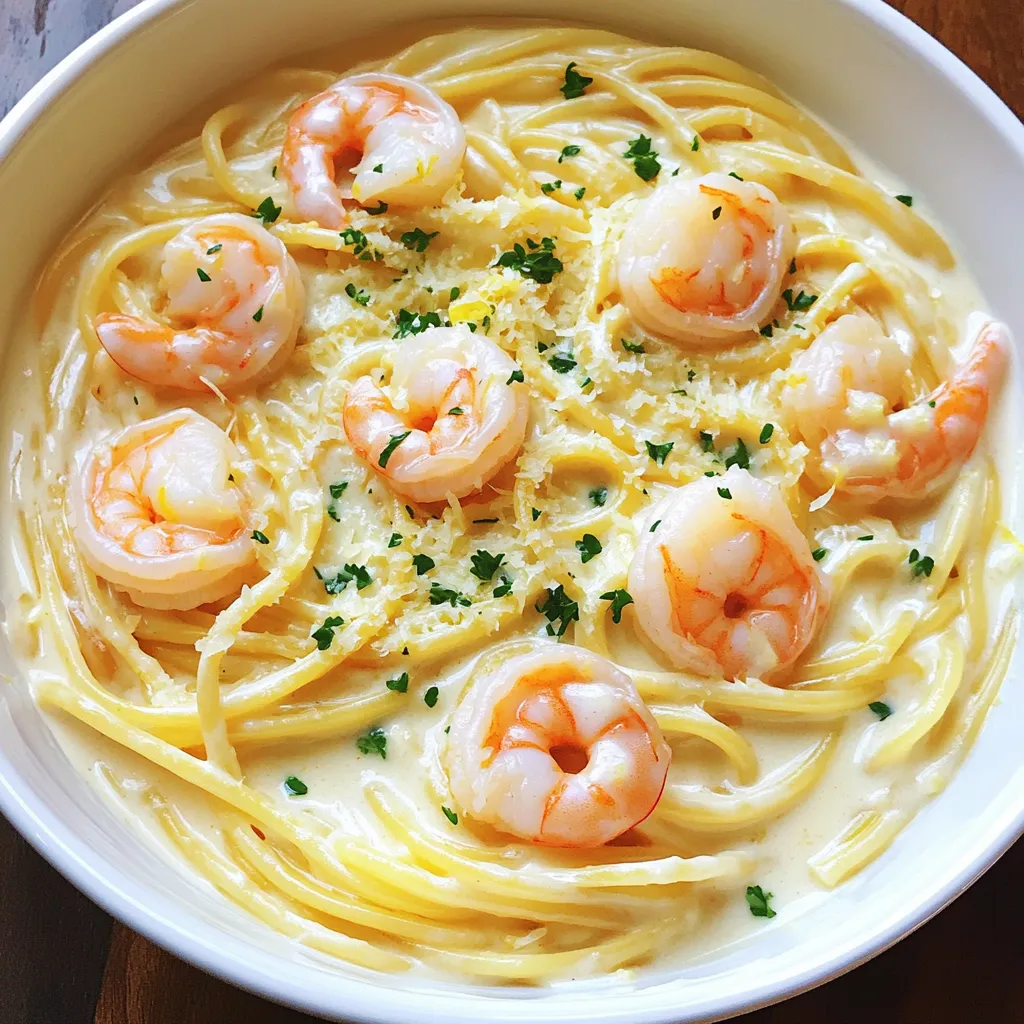 - 8 oz linguine or fettuccine pasta: I love linguine for its flat shape. It holds the creamy sauce well. You can also use fettuccine if you prefer. - 1 lb large shrimp, peeled and deveined: Choose fresh shrimp for the best taste. Look for shrimp that are firm and pink. - 4 cloves garlic, minced: Fresh garlic adds a strong, rich flavor. It’s key to the sauce. - 2 tablespoons olive oil: This adds a nice base flavor. Use high-quality olive oil for the best results. - 1 cup heavy cream: Cream makes the sauce rich and smooth. It helps bind the pasta and shrimp together. - 1 cup grated Parmesan cheese: This cheese adds a salty, nutty flavor. It melts beautifully into the sauce. - 1 teaspoon lemon zest: The zest gives a bright note. It lifts the dish and balances the creaminess. - Salt and pepper to taste: Use these to enhance the flavors. Adjust them according to your taste. - ½ teaspoon red pepper flakes: Add these for a spicy kick. They bring warmth without overpowering the dish. - 1 tablespoon chopped fresh parsley: This is for garnish. It adds color and freshness to the plate. - Lemon zest and lemon wedge: Use lemon zest in the sauce and a wedge for serving. The extra acidity brightens the flavors. Feel free to mix and match these ingredients to suit your taste! First, you need to boil salted water in a large pot. Use about 4 quarts of water for 8 ounces of linguine or fettuccine. Once the water is boiling, add the pasta. Cook it according to the package instructions until it is al dente. This usually takes about 9-11 minutes. You want the pasta to be firm but not hard. Before draining, save about ½ cup of pasta water. This water helps thicken the sauce later. After saving the water, drain the pasta in a colander. While the pasta cooks, heat 2 tablespoons of olive oil in a large skillet over medium heat. When the oil is hot, add 4 minced garlic cloves. Sauté the garlic for about 30 seconds until it smells great. Be careful not to let it burn. Next, add 1 pound of peeled and deveined shrimp to the skillet. Season them with salt, pepper, and red pepper flakes if you like some heat. Cook the shrimp for about 2-3 minutes per side. They should turn pink and opaque. Once they are done, take them out and set them aside. In the same skillet, pour in 1 cup of heavy cream. Bring it to a gentle simmer. Stir in 1 cup of grated Parmesan cheese and 1 teaspoon of lemon zest. Mix well until the cheese melts and the sauce is nice and creamy. Now, return the shrimp to the skillet along with the drained pasta. Toss everything together. If the sauce is too thick, add some of the reserved pasta water a little at a time until you get the right thickness. Make sure the pasta is well coated with the sauce. - Prep your ingredients first. Chop garlic, clean shrimp, and measure out your cream and cheese. This makes cooking quick. - Use a pot for pasta and a skillet for sauce. This setup helps you work faster. While the pasta cooks, you can make the sauce. - Adjust the sauce thickness. If it’s too thick, add a bit of reserved pasta water. This keeps it creamy and smooth. - Taste as you go. Add salt and pepper to balance the flavors. A little bit can enhance the dish a lot. - Serve in wide bowls. This allows you to showcase the pasta and shrimp nicely. - Garnish with fresh parsley. A sprinkle of chopped parsley adds color. You can also add extra Parmesan on top for a rich touch. A lemon wedge on the side brightens the dish and adds zest. {{image_2}} If you want to switch things up, try different kinds of pasta. You can use gluten-free pasta if you need to avoid gluten. Options like rice or chickpea pasta work great. Whole wheat pasta is another healthy choice. It adds fiber and a nutty flavor. Both of these options cook well, so you won’t lose any taste in your dish. Not in the mood for shrimp? You can swap shrimp for chicken or tofu. Chicken breast is tender and cooks quickly. Dice it into small pieces and cook it until golden. Tofu is a great plant-based option. Just press it to remove extra water and cut it into cubes. Both options absorb the creamy sauce well, making them tasty choices. Want to add more nutrition? Toss in some vegetables! Spinach, cherry tomatoes, or bell peppers add color and flavor. You can sauté them with the garlic for extra taste. Fresh herbs like basil or oregano can also enhance the flavor. If you want to change the cheese, try mozzarella or feta. Each cheese brings a new taste, making your dish unique. To keep your creamy garlic shrimp pasta fresh, use airtight containers. Glass or plastic containers work well. Allow the pasta to cool slightly before sealing. This helps prevent condensation, which can make the pasta soggy. Store the leftovers in the refrigerator. They will stay good for about 3 days. If you want to keep them longer, freeze the pasta. It can last in the freezer for up to 2 months. Just remember to label the container with the date. When it's time to enjoy your leftovers, reheating is key. The best method is to use the stovetop. Heat a skillet over medium-low heat. Add a splash of water or olive oil to help loosen the sauce. Stir gently until heated through. Avoid using the microwave if you can. Microwaving can make the pasta tough. If you must use it, do so in short bursts. Check and stir often to prevent overcooking. This will help keep your creamy garlic shrimp pasta delicious and creamy. To make creamy garlic shrimp pasta from scratch, follow these steps. First, cook the pasta in salted water. I recommend using linguine or fettuccine. Cook it until it is al dente, then drain and set aside. Next, heat olive oil in a large skillet. Add minced garlic and sauté it until fragrant. After that, add the shrimp to the skillet. Season them with salt, pepper, and red pepper flakes if you want some heat. Cook them until they turn pink and opaque. Remove the shrimp and set them aside. Now, in the same skillet, pour in heavy cream and bring it to a gentle simmer. Stir in gr