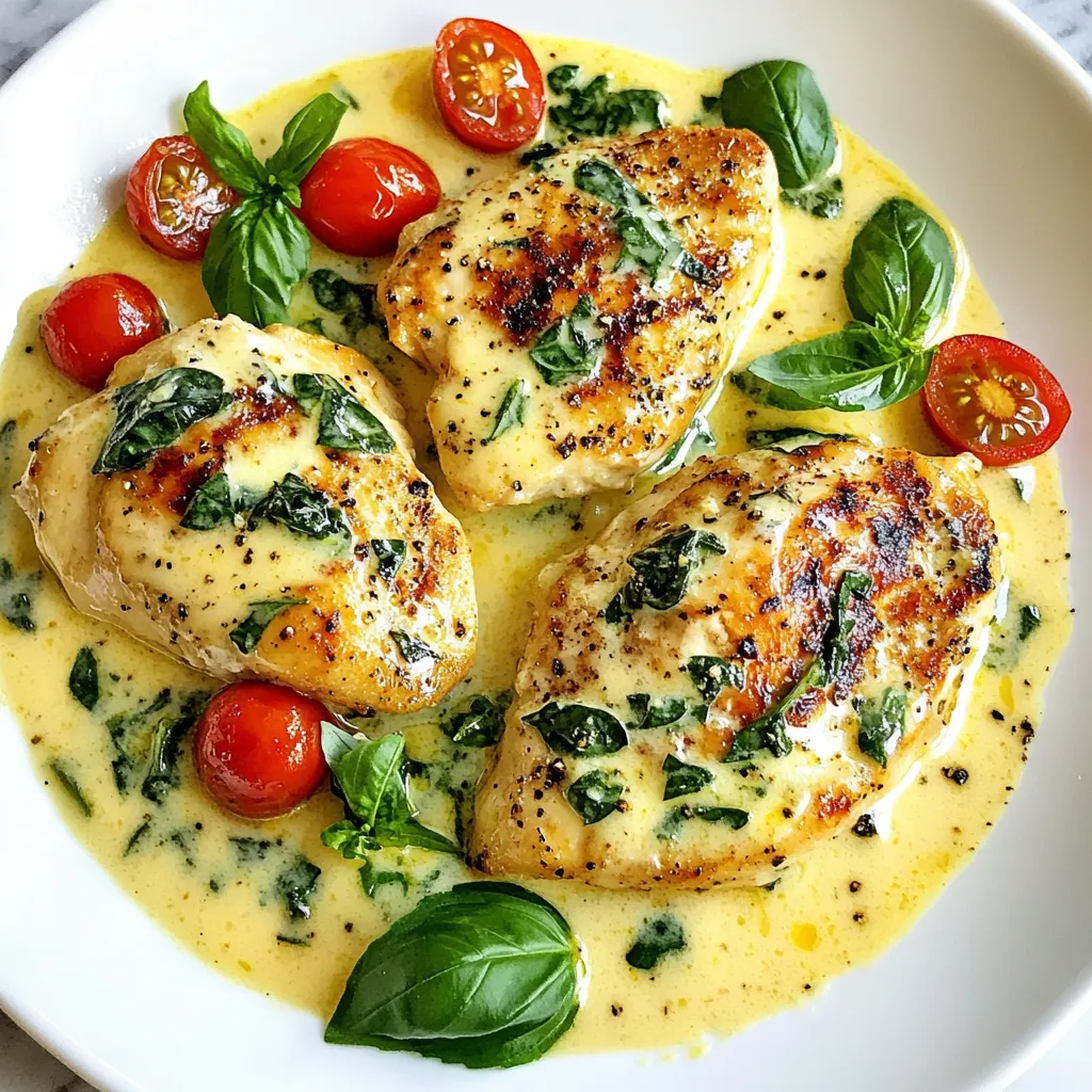 Garnish with fresh basil leaves for a lovely touch. It adds a pop of green and freshness. Serve the chicken on a nice plate. This makes it look more appealing. You can also pair it with pasta or rice. These sides soak up the creamy sauce well.