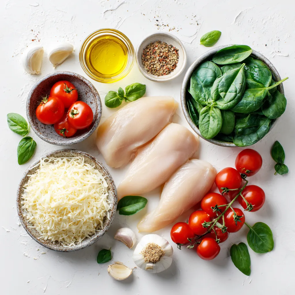 A delicious and creamy chicken dish with garlic, tomatoes, and spinach.