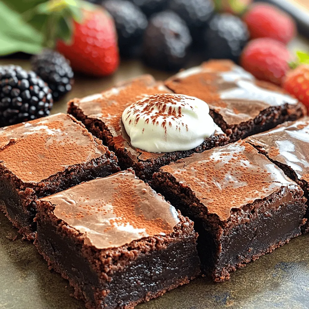 Presentation makes a big difference! Serve your brownies warm for the best taste. A dollop of yogurt on top adds a nice touch. You can also sprinkle cocoa powder for a fancy look. Fresh berries on the side add color and flavor. They brighten up the plate and give a fresh taste. This makes the dessert feel special, even on a casual day. Enjoy your delicious creation!