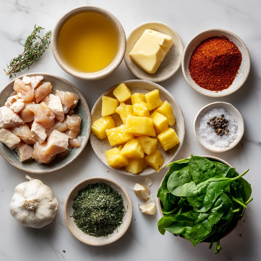 To make a great Garlic Butter Chicken Potato Skillet, you need simple, fresh ingredients. First, choose two boneless, skinless chicken breasts. Dicing them helps with quick cooking. Next, four medium potatoes add heartiness. Cut them into small cubes for even cooking.