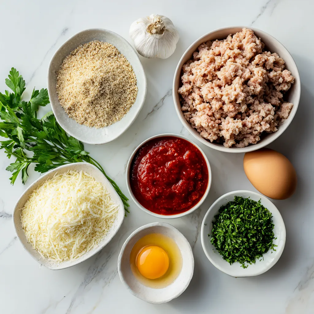- In a large mixing bowl, combine the ground turkey, whole wheat breadcrumbs, grated Parmesan cheese, chopped parsley, egg, minced garlic, dried oregano, onion powder, salt, and black pepper.