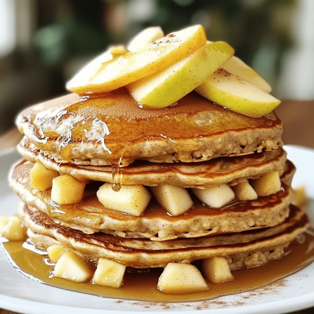 Serve your pancakes stacked high. Drizzle a little honey or maple syrup on top. Add extra apple slices for flair. A sprinkle of cinnamon enhances the flavor. You can also serve them with yogurt for added creaminess. Enjoy your delicious, healthy breakfast!