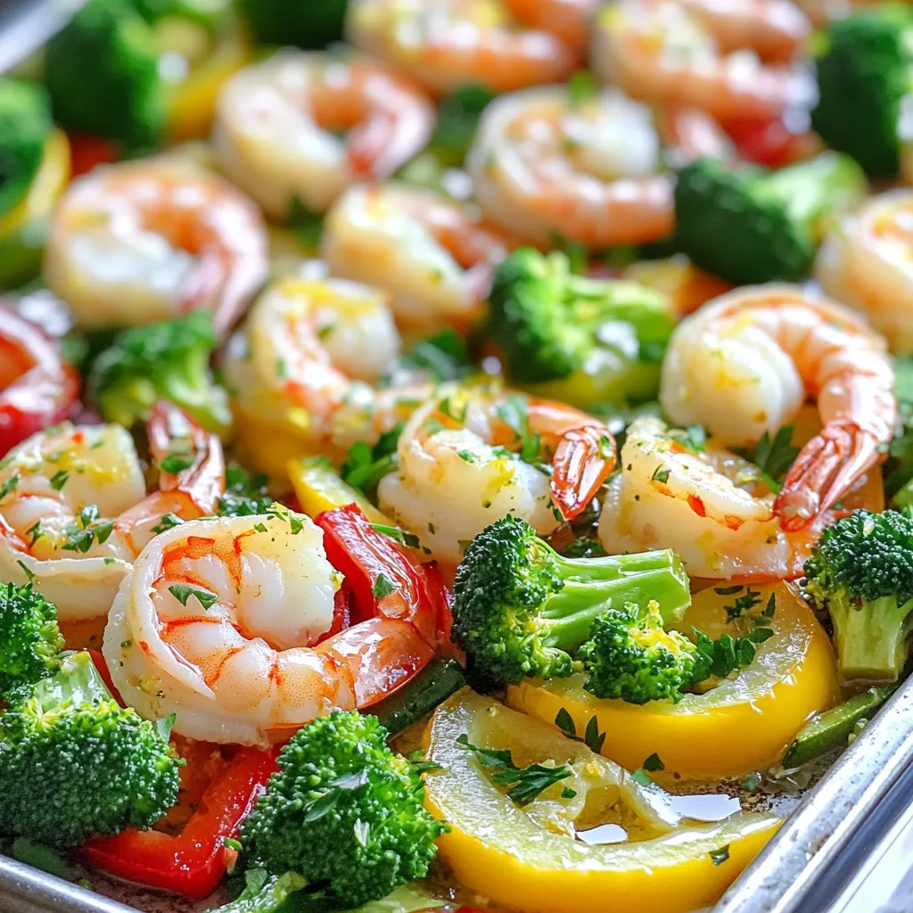 Enjoy the bright flavors and colors of your Lemon Garlic Shrimp & Veggie Sheet Pan Delight!