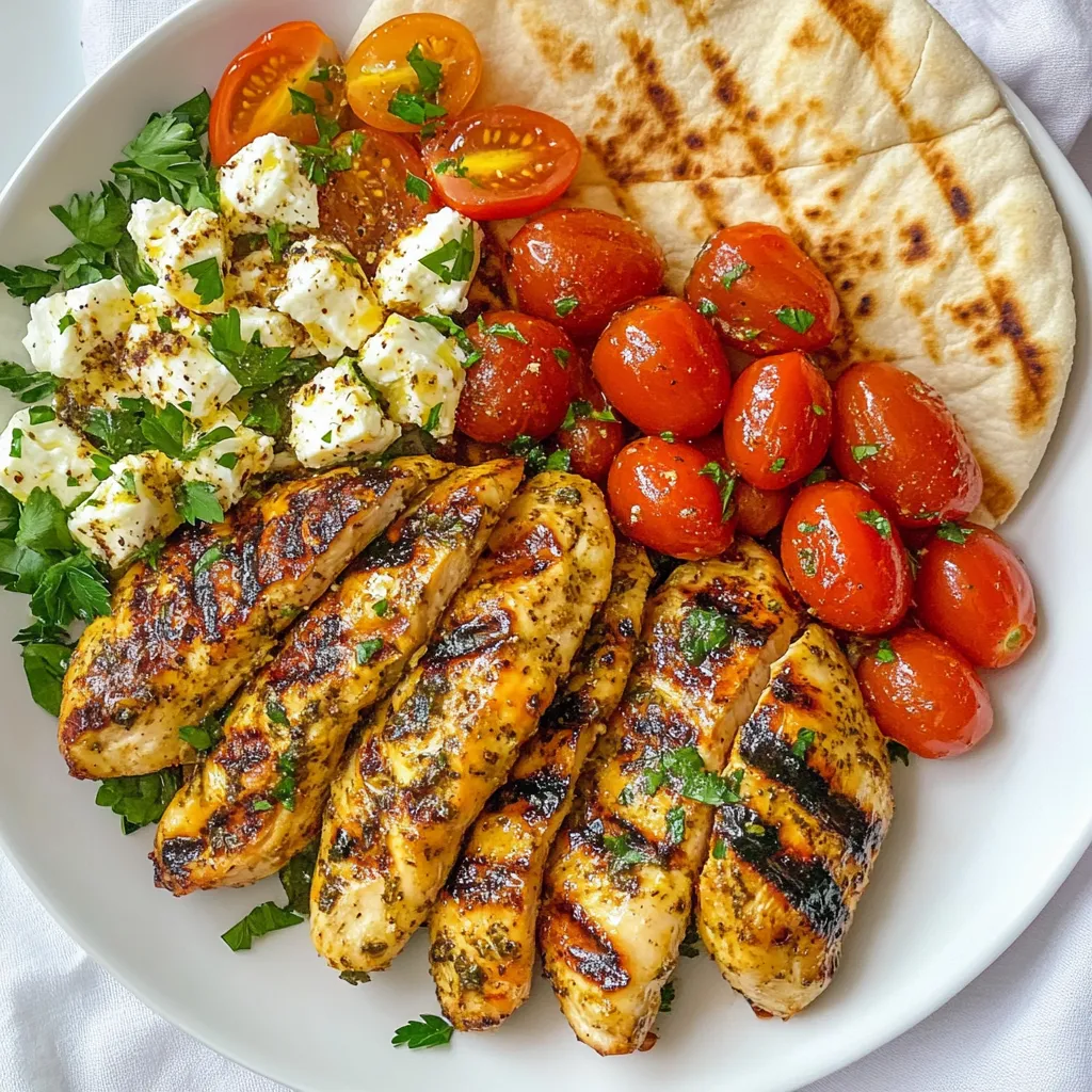 To make Mediterranean chicken tenders, you need fresh and tasty ingredients. Here’s what you’ll need: - 1 pound chicken tenders - 1 cup plain yogurt - 2 cloves garlic, minced - 2 tablespoons lemon juice - 1 tablespoon olive oil - 1 teaspoon dried oregano - 1 teaspoon ground cumin - 1 teaspoon paprika - Salt and pepper to taste - ½ cup feta cheese, crumbled - 1 cup cherry tomatoes, halved - Fresh parsley, chopped for garnish - Pita bread, for serving Each ingredient plays a key role in making this dish flavorful and simple. The chicken tenders are the star, tender and juicy. The yogurt marinade makes them creamy and adds tang. Garlic brings a nice punch, while lemon juice adds brightness. Olive oil keeps everything moist. Herbs and spices like oregano, cumin, and paprika give the chicken its Mediterranean flair. Feta cheese and tomatoes make a fresh side salad. Finally, warm pita bread complements the dish perfectly. Enjoy the mix of flavors and textures! {{ingredient_image_1}} To start, gather your ingredients for the marinade. In a medium bowl, mix together: - 1 cup plain yogurt - 2 cloves garlic, minced - 2 tablespoons lemon juice - 1 tablespoon olive oil - 1 teaspoon dried oregano - 1 teaspoon ground cumin - 1 teaspoon paprika - Salt and pepper to taste Stir these items well. The yogurt adds creaminess while the spices bring flavor. This marinade will make your chicken tender and juicy. Next, add 1 pound of chicken tenders to the marinade. Make sure each piece is covered well. Cover the bowl with plastic wrap and place it in the fridge. Let it marinate for at least 30 minutes. You can also leave it for up to 2 hours. The longer it sits, the more flavor it absorbs. After marinating, heat your grill or skillet to medium-high. Remove the chicken from the marinade and let the extra drip off. Cook the chicken for about 4-5 minutes on each side. Look for a golden brown color. You want an internal temperature of 165°F (75°C). This ensures the chicken is safe to eat and perfectly cooked. While the chicken cooks, prepare a fresh salad. In a bowl, combine: - 1 cup cherry tomatoes, halved - ½ cup feta cheese, crumbled Drizzle with a little olive oil and season with salt and pepper. Toss gently to mix. This salad adds a nice, fresh touch to your meal. Once the chicken is ready, take it off the heat. Let it rest for a couple of minutes before slicing, if you like. Serve the chicken tenders on a platter with the fresh salad. Add warm pita bread on the side. Finish by garnishing with chopped fresh parsley for color and flavor. Enjoy your Mediterranean feast! When picking chicken tenders, look for fresh, pink meat. Avoid any that seem slimy or have a strong smell. Choosing high-quality chicken ensures great taste and texture. If you can, buy organic or free-range chicken for better flavor and health benefits. The marinade is key to flavor. I use plain yogurt as a base. It keeps the chicken moist. Garlic, lemon juice, and spices add layers of taste. Make sure to coat each tender well and let them marinate for at least 30 minutes. If time allows, marinate for up to 2 hours. This gives the chicken more time to soak up the flavors. For cooking, preheat your grill or skillet to medium-high heat. This helps the chicken get a nice golden crust. Cook each tender for about 4-5 minutes on each side. Always check that the chicken's inside temperature reaches 165°F (75°C). This ensures it's safe and juicy. Let the chicken rest for a few minutes after cooking. This keeps the juices inside, making every bite tender and flavorful. Pro Tips Marinate Longer for Flavor: For the best flavor, allow the chicken to marinate for at least 2 hours. This helps the spices penetrate the meat, enhancing the overall taste. Use a Meat Thermometer: To ensure perfectly cooked chicken, use a meat thermometer. The internal temperature should reach 165°F (75°C). Rest the Chicken: After cooking, let the chicken rest for a few minutes before slicing. This allows the juices to redistribute, keeping the meat moist and flavorful. Fresh Ingredients Matter: Use fresh herbs and high-quality feta cheese for the salad to elevate the dish's flavor and presentation. {{image_2}} You can easily adapt this dish for various diets. For a gluten-free option, skip the pita bread and serve the chicken with a fresh salad. If you want a low-carb meal, use cauliflower rice instead of pita. Those who are vegan can swap the chicken with marinated tofu. The yogurt can be replaced with a plant-based yogurt for a dairy-free option. These changes let everyone enjoy this tasty meal. You can change the flavors by using different herbs and spices. Try adding fresh basil or thyme for a unique taste. Swap feta for goat cheese for a creamier texture. Instead of cherry tomatoes, use bell peppers for a crunchier bite. Adding olives can give a briny kick that pairs well with the chicken. These small swaps can make the dish feel fresh and exciting. For a casual lunch, serve the chicken tenders with a simple green salad. If you're hosting a dinner party, place the chicken on a large platter with colorful sides like grilled vegetables. For a picnic, pack the chicken with pita and a side of tzatziki. You can also serve it at a barbecue with skewers for easy eating. Each occasion can change how you present this dish while keeping it delicious. To keep your Mediterranean chicken tenders fresh, store them in an airtight container. Make sure the chicken is cool before sealing it. Place the container in the fridge. It will stay good for 3 to 4 days. If you want to keep it longer, consider freezing. Reheat your chicken tenders in the oven for the best results. Preheat your oven to 350°F (175°C). Place the chicken on a baking sheet and cover it with foil. Heat for about 10-15 minutes. This keeps the tenders moist and tasty. You can also use a microwave, but it may dry them out. You can freeze chicken tenders for up to 3 months. Wrap each tender in plastic wrap and place