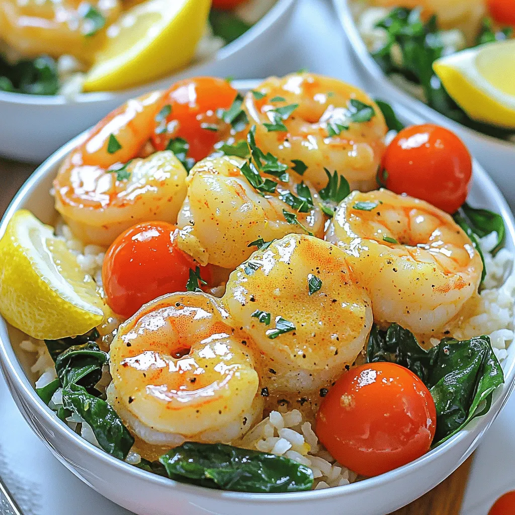 - 1 lb large shrimp, peeled and deveined - 4 tablespoons unsalted butter - 4 cloves garlic, minced These main ingredients create the heart of the dish. The shrimp provide protein and texture. The butter adds richness, while the garlic brings a strong, savory flavor. - 1 teaspoon smoked paprika - 1 teaspoon lemon zest - Salt and pepper to taste Smoked paprika gives a warm, smoky taste. Lemon zest adds brightness and a fresh note. Salt and pepper will help balance the flavors. Adjust these seasonings to fit your taste. - 2 cups cooked jasmine rice - 1 cup cherry tomatoes, halved - 1 cup baby spinach The jasmine rice serves as a soft base for the shrimp. Cherry tomatoes add sweetness and color. Baby spinach wilts quickly, providing a healthy green touch. Together, they round out the meal perfectly. How to melt the butter Start by placing a large skillet on medium heat. Add four tablespoons of unsalted butter to the pan. Let the butter melt slowly. You want it to foam a bit but not brown. This keeps the flavor light and fresh. Sautéing the garlic Once the butter is melted, add four cloves of minced garlic. Stir the garlic in the butter for about one minute. You want to smell the garlic but be careful not to let it burn. Burnt garlic can ruin the dish. Adding spices Next, stir in a teaspoon of smoked paprika and a teaspoon of lemon zest. Sprinkle in salt and pepper to taste. These ingredients add depth and brightness to your shrimp. Mixing them well with the garlic and butter is key. Cooking time tips Now, add the shrimp to the skillet. Cook the shrimp for two to three minutes on each side. Watch closely as they turn pink and opaque. This tells you they are done. Overcooking will make them tough, so stay alert! Incorporating cherry tomatoes After the shrimp is cooked, toss in one cup of halved cherry tomatoes. Stir them gently into the mix. The heat will soften them just a bit and bring out their sweet flavor. Adding spinach Finally, add one cup of baby spinach. Stir until the spinach wilts, which takes about one to two minutes. This not only adds color but also boosts the nutrition of your meal. Your shrimp bowl is almost ready! To make sure your shrimp cooks just right, watch the color. Cook it until it turns pink and opaque. This takes about 2-3 minutes on each side. If you overcook shrimp, it gets tough. To prevent burnt garlic, keep the heat low. Saute the garlic for just about one minute. Stir it often to avoid burning. If it burns, it will taste bitter. For garnishes, fresh parsley works well. It adds a nice pop of color and flavor. Lemon wedges are also great for an extra zing. Pair your shrimp bowl with a side salad or some crusty bread. Cooked jasmine rice makes a perfect base for this dish. You can add spices for a kick. Try red pepper flakes or cayenne for heat. If you want variety, switch up the veggies. Bell peppers or zucchini add nice texture and taste. You can even use quinoa instead of rice for a healthy twist. {{image_2}} You can swap shrimp for other seafood. Try scallops or crab for a twist. These options work well with garlic butter. You can also use fish like salmon. Each type brings its own taste. Rice is another area for swaps. You can use brown rice or quinoa instead of jasmine rice. Both add different textures and flavors. For a low-carb option, try cauliflower rice. It holds the garlic butter sauce well. For an Asian-inspired twist, add soy sauce or ginger. These ingredients enhance the dish's depth. You can also mix in sesame oil for a nutty note. This change gives a fresh taste to your bowls. If you love spice, try adding red pepper flakes. A pinch can elevate the heat level. You can also add sriracha for a bold kick. This creates a fun, zesty flavor that can surprise your taste buds. To make this dish gluten-free, use tamari instead of soy sauce. This swap keeps the flavor while being safe for gluten-free diets. Always check your labels to ensure safety. For vegan or vegetarian options, replace shrimp with tofu or chickpeas. You can sauté the tofu until golden for a nice texture. Use vegan butter to keep the richness without dairy. This way, you maintain the essence of the dish while making it plant-based. For storing leftovers, use an airtight container. Glass or plastic works well. Make sure the shrimp is cool before sealing. In the refrigerator, shrimp bowls will last for up to three days. Always check for any off smells before eating leftover shrimp. To reheat the shrimp, the stove is best. Heat a skillet over medium heat and add a bit of butter. Place the shrimp in the skillet and warm for a few minutes, stirring gently. The microwave is faster but may make the shrimp chewy. If you use the microwave, heat in short bursts and check often. Yes, you can freeze shrimp dishes. However, shrimp can lose texture when frozen. To freeze, place the shrimp bowls in a freezer-safe container. Label with the date and use within three months. To thaw, place the container in the fridge overnight. You can also use cold water to speed up thawing if you're in a hurry. For this recipe, large shrimp work best. Fresh shrimp has a great taste. However, frozen shrimp is also good and often easier to find. Just make sure to thaw it before cooking. When choosing shrimp, consider the size. Large shrimp gives a nice bite. If you use smaller shrimp, cook them for less time. This ensures they do not overcook and turn rubbery. Yes, you can make this dish ahead of time. Garlic butter shrimp can be prepped for meal prep. Cook the shrimp, but do not add the tomatoes and spinach until serving. To keep it fresh, store the shrimp in an airtight container. It lasts in the fridge for about two days. When you’re ready to eat, heat it up and add the fresh veggies. Garlic butter shrimp pairs well with many side dishes. You can serve it over jasmine rice, which soaks up the flavors. You might also like to add some cherry tomatoes and baby spinach for more color and taste. A fresh salad with green