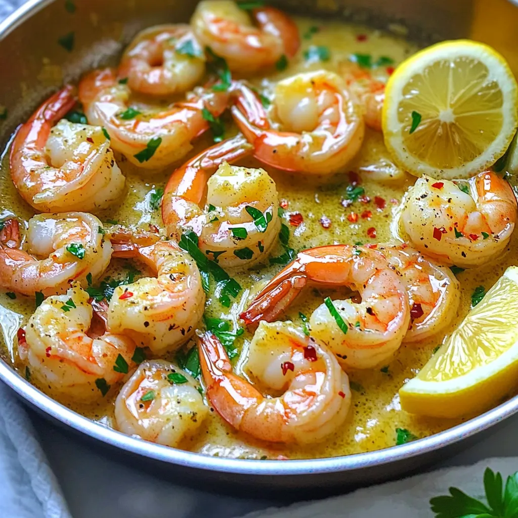 To serve, place the shrimp on a plate. Drizzle some of the buttery sauce on top. Add lemon slices on the side for a fresh touch. This dish looks great and tastes even better. Enjoy your meal!