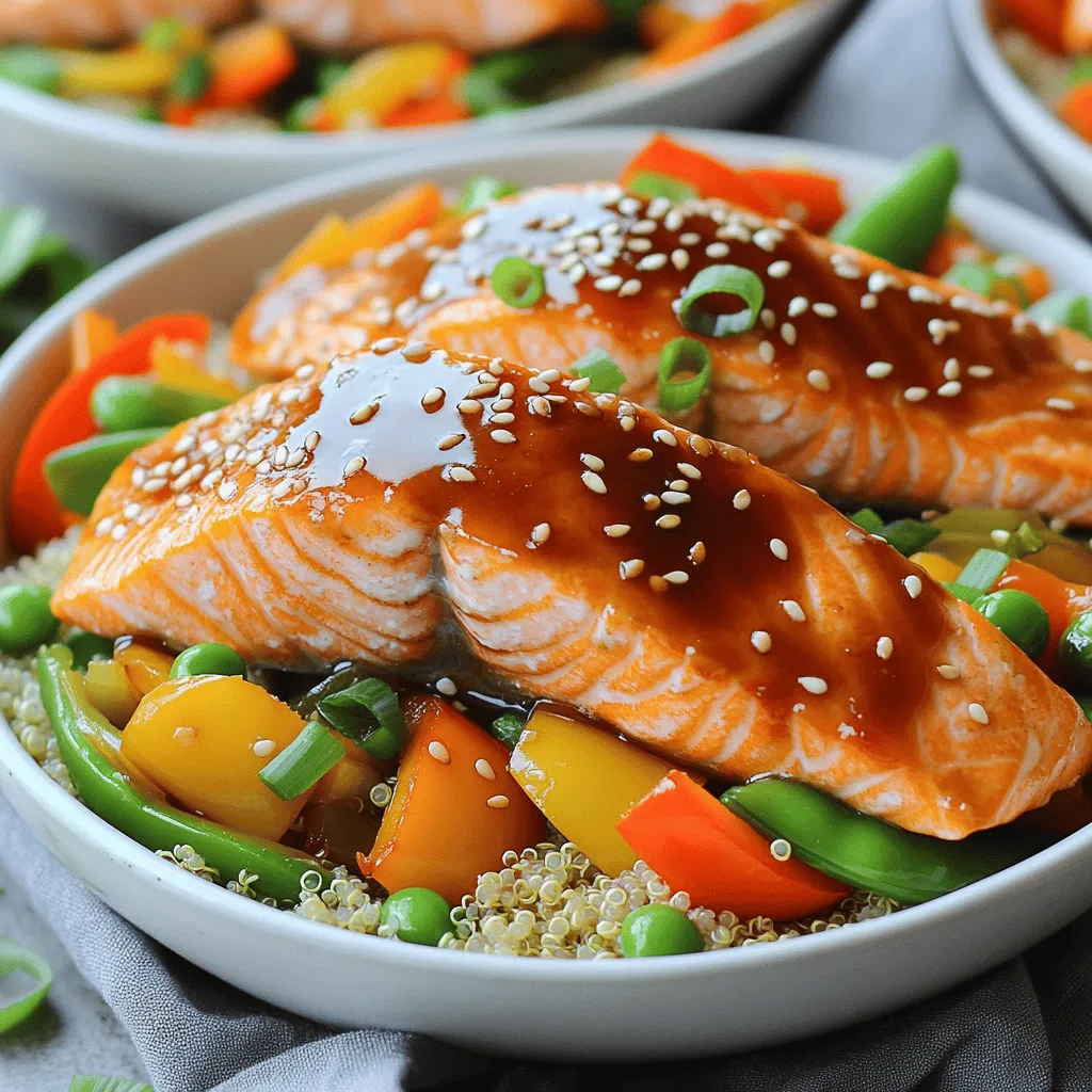 For Minute Teriyaki Salmon Bowls, these ingredients create a fun and tasty dish. The salmon provides great protein, while the teriyaki sauce adds a sweet and salty kick. Quinoa or rice serves as a base, giving you energy.
