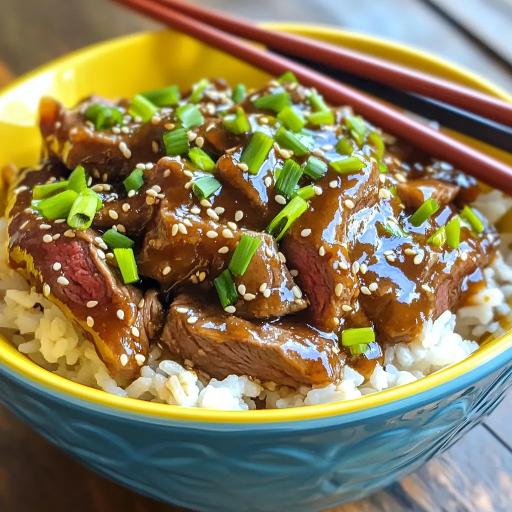 In a small bowl, mix together the soy sauce, brown sugar, rice vinegar, and sesame oil. Pour this sauce over the beef in the skillet. Stir well to coat the meat. Let it simmer for another 2-3 minutes. The sauce should thicken slightly.