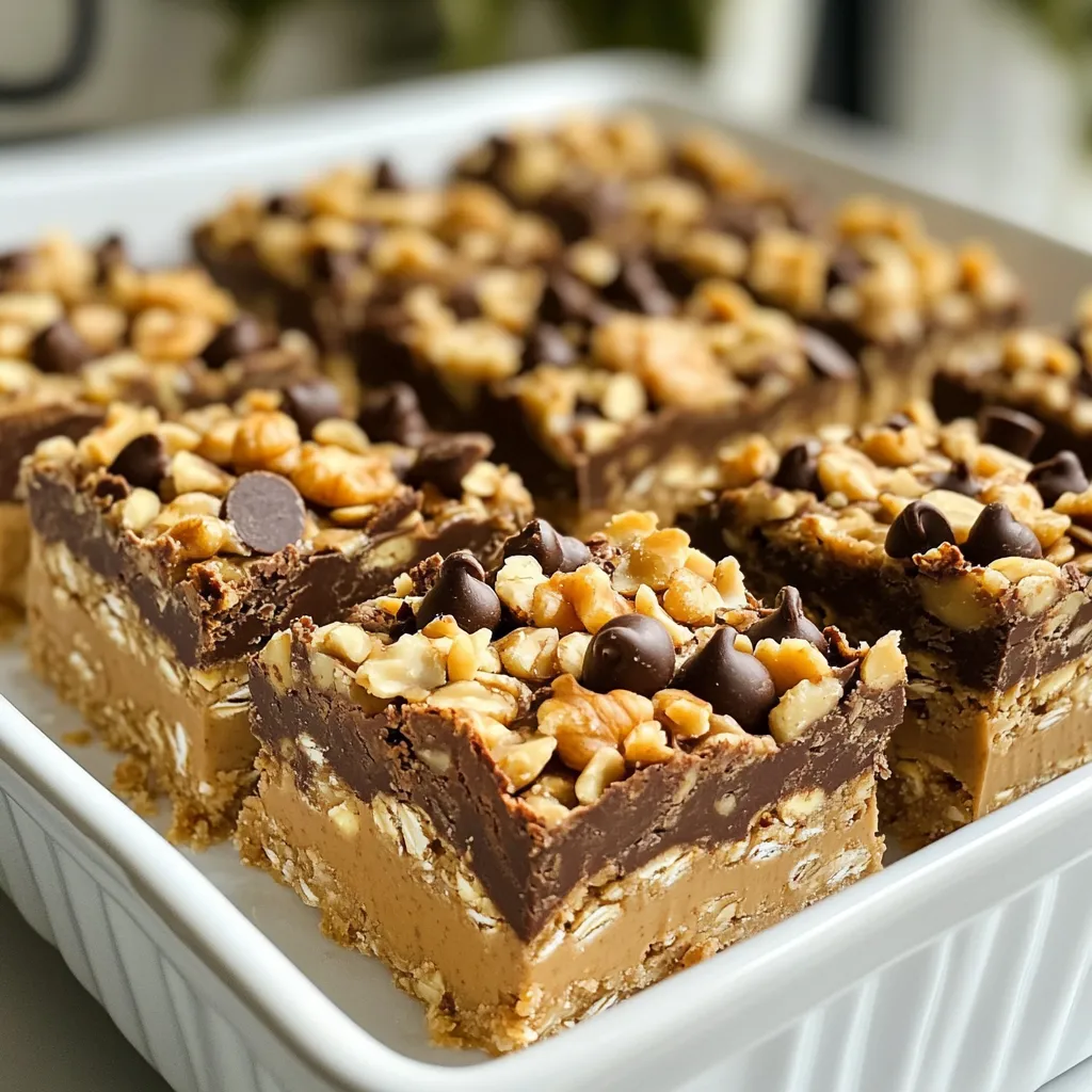 Delicious and easy-to-make no-bake bars with peanut butter, oats, and chocolate.