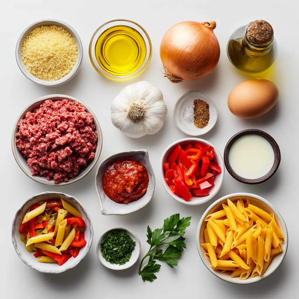 Main Ingredients for One-Pot Creamy Cajun Meatball Pasta