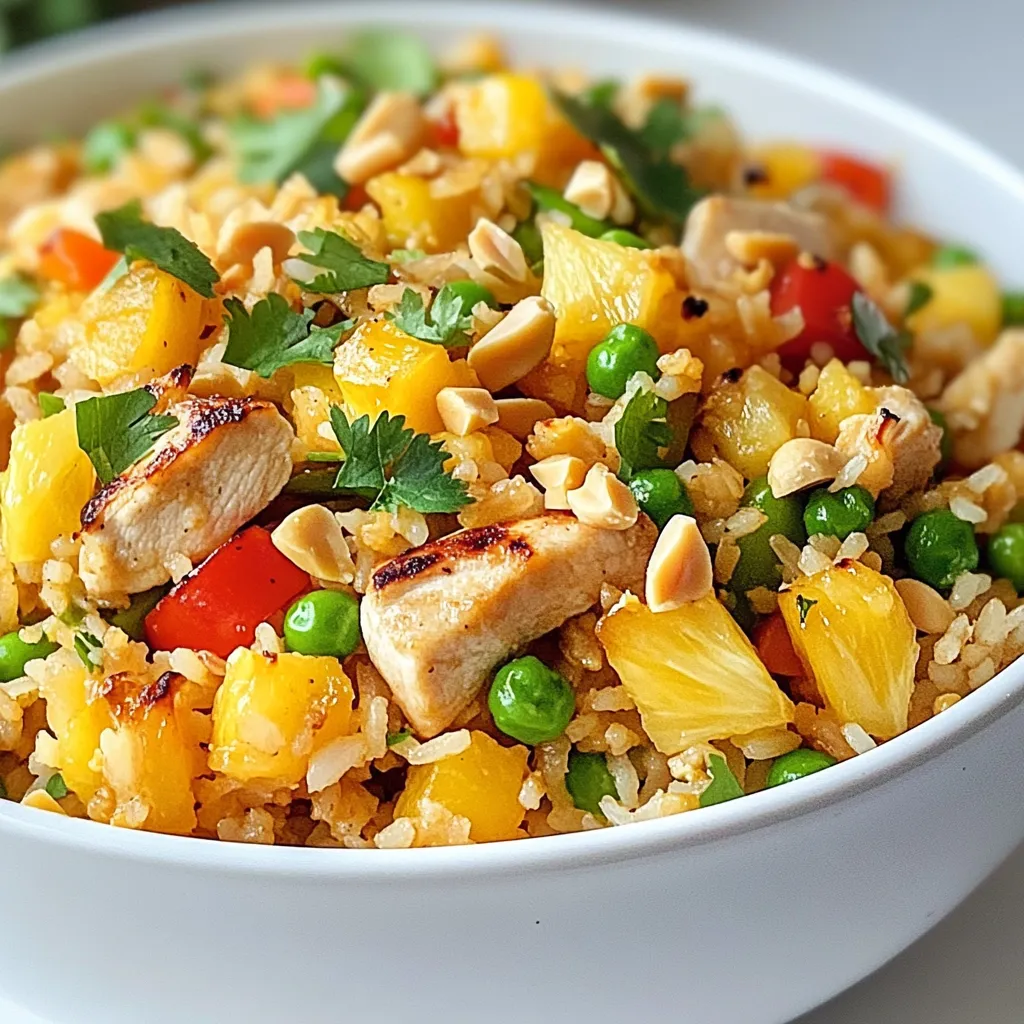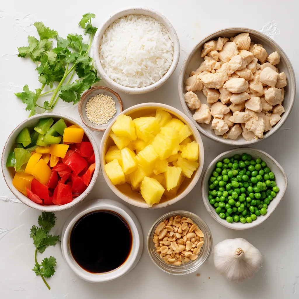 Start with day-old jasmine rice. It is drier and helps avoid clumps. Chop all your veggies and chicken before cooking. This makes the process fast and easy. Use fresh pineapple for the best taste. If you want a crunch, add crushed peanuts at the end.