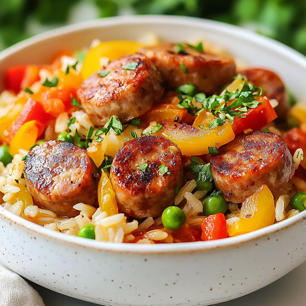 You can mix up the sausage type to suit your taste. If you want a healthier twist, use brown rice. Adding more veggies boosts nutrition while keeping it tasty.