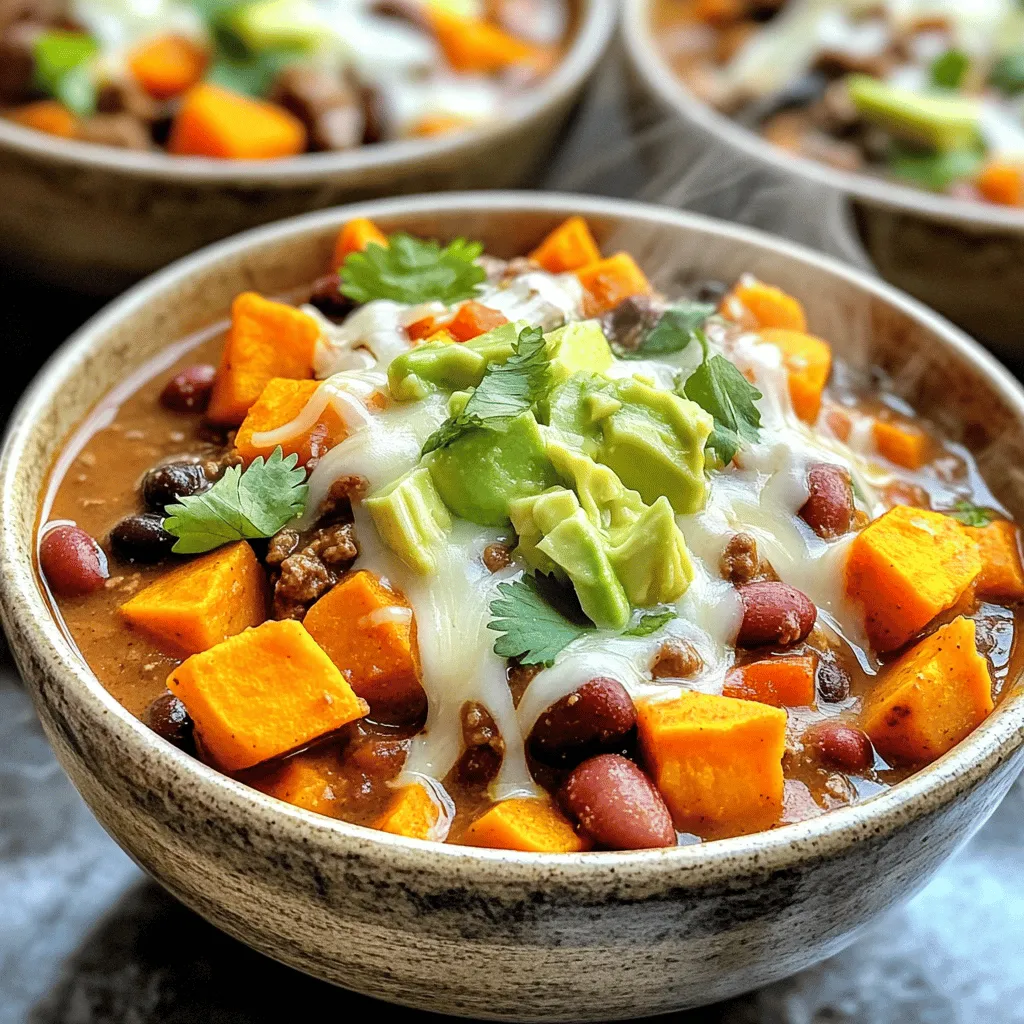 This recipe combines simple ingredients to create a hearty chili. Ground meat, sweet potatoes, and beans bring rich flavor. You can enhance taste with spices like chili powder and cumin. You have many options for toppings to personalize your dish.