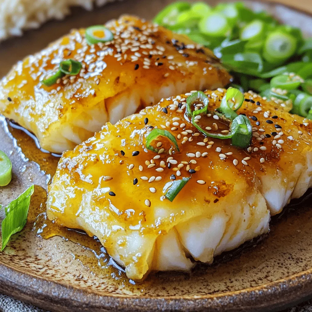The ingredients for Sesame Ginger Glazed Cod are simple yet impactful. Cod is a mild fish, perfect for soaking up flavors. You need four fillets, about six ounces each. Season them with salt and pepper for taste.