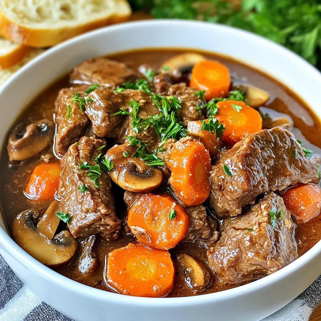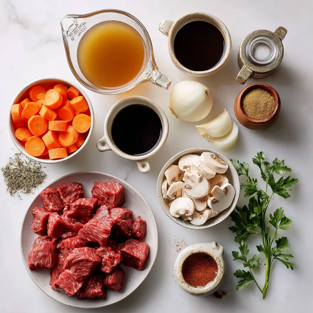 In this recipe, beef sirloin is your star. This cut is tender and full of flavor. I love how it holds up in slow cooking. The vegetables bring color and taste. Onion and garlic add depth, while carrots and mushrooms give nice texture.