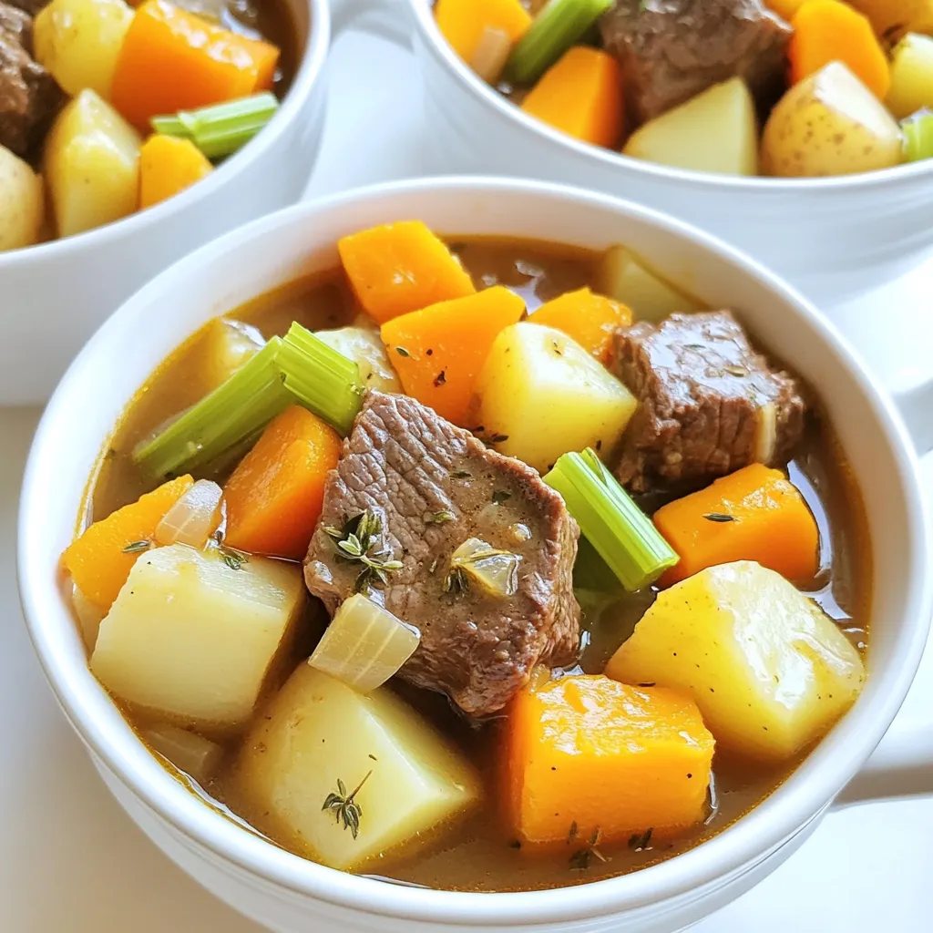 Seasonings give this stew its soul. Beef broth makes it hearty and deep. Tomato paste adds a hint of tang. Thyme and rosemary infuse a lovely herbal note. The bay leaf rounds out the flavors perfectly. Don’t forget salt and pepper—they make all the difference!