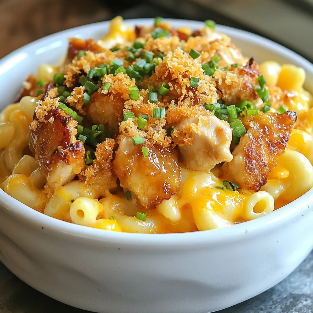 - Preheat the oven to 350°F (175°C). Transfer the mac and cheese with chicken into a baking dish. Sprinkle breadcrumbs on top for a crispy finish.